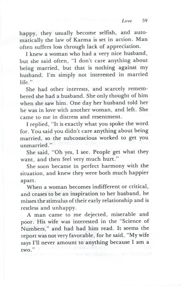 happy, they usually become selfish, and automatically the law of Karma is set in action. Man often suffers loss through lack of appreciation.