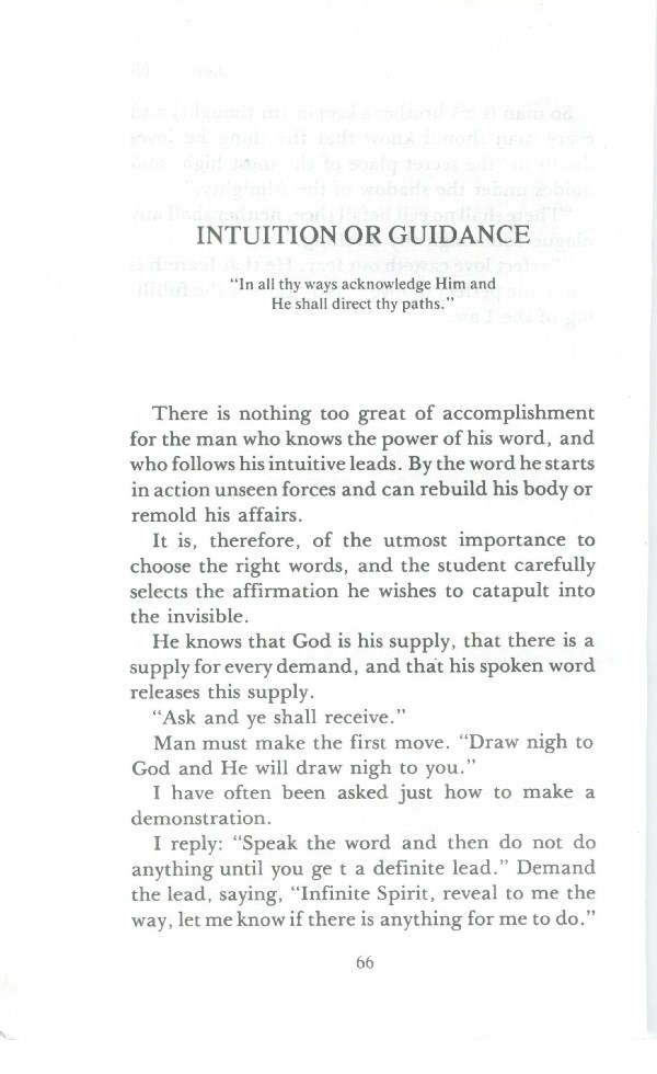 I reply: "Speak the word and then do not do anything until you get a definite lead." Demand the lead, saying, "Infinite spirit, reveal to me the way, let me know if there is anything for me to do."