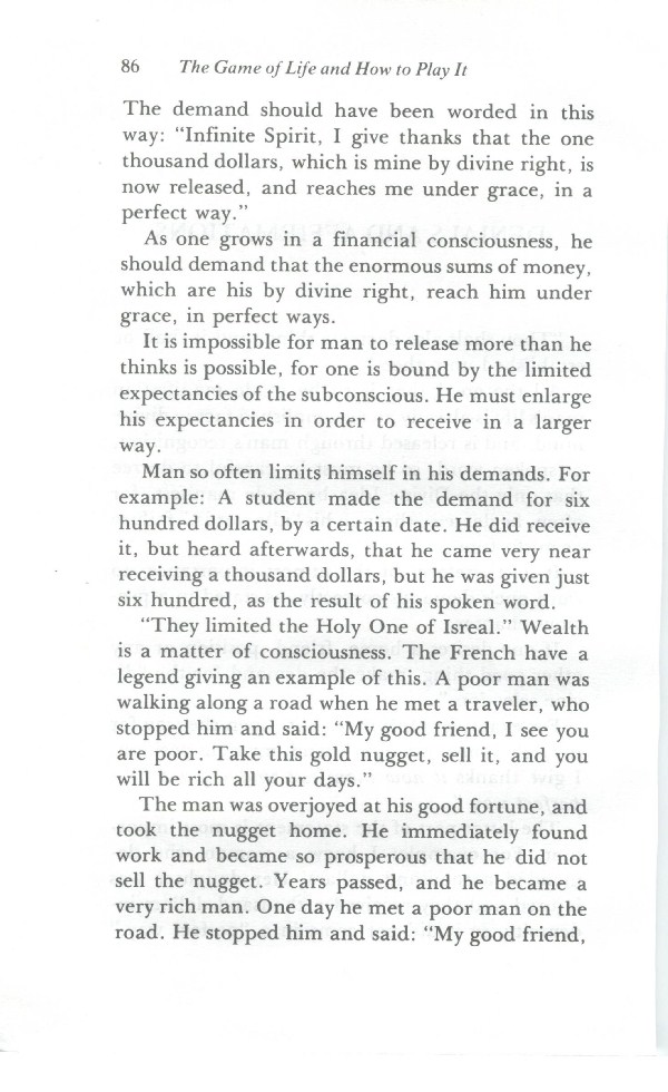 The demand should have been worded in this way: "Infinite Spirit, I give thanks that the one thousand dollars, which is mine by divine right, is now released, and reaches me under grace in a perfect way."