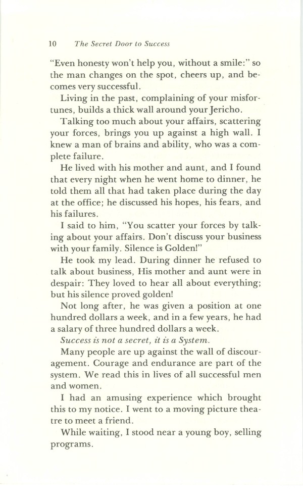 Talking too much about your affairs, scattering your forces, brings you up against a high wall. I knew a man of brains and ability, who was a complete failure.