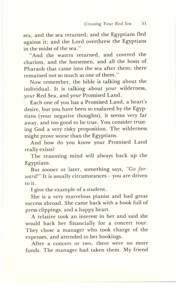 Each one of you has a Promised Land, a heart's desire, but you have been so enslaved by the Egyptians (your negative thoughts), it seems very far away, and too good to be true. You consider trusting God a very risky proposition. The wilderness might prove worse than the Egyptians.