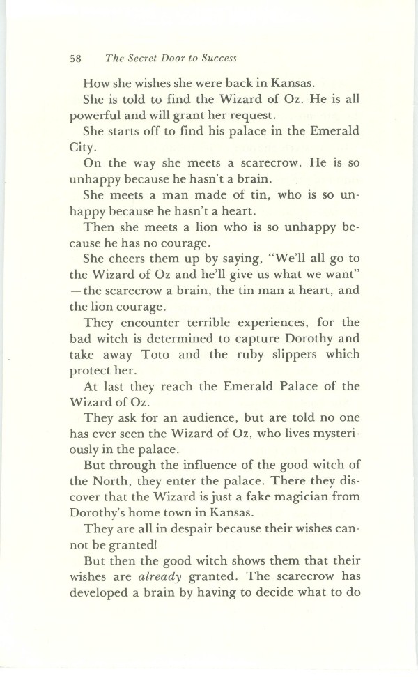 The Secret Door to Success - Bricks Without Straw - And Five of Them Were Wise - What Do You Expect? - The Long Arm of God - The Fork in the Road - Crossing Your Red Sea - Watchman at the Gate - Way of Abundance - I Shall Never Want - Look With Wonder - Catch Up with Your Good - Rivers in the Desert - The Inner Meaning of Snow White and the Seven Dwarves - Contents -