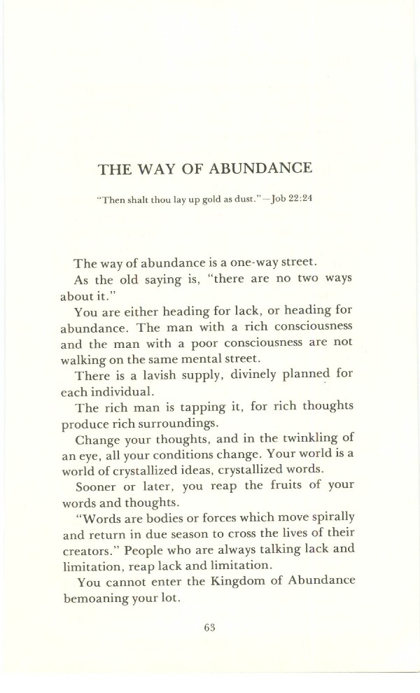 You cannot enter the Kingdom of Abundance bemoaning your lot.