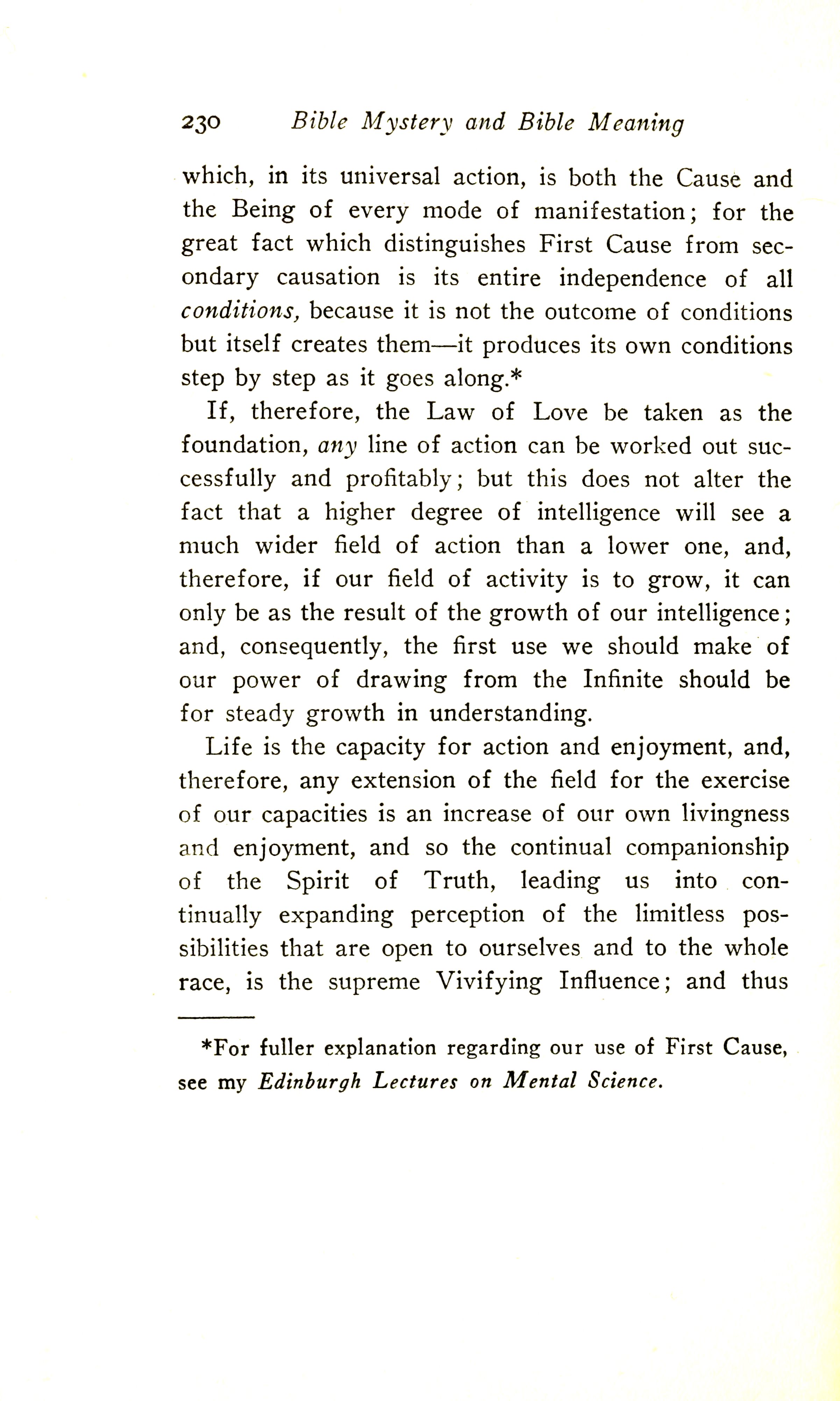 [For fuller explanation regarding the use of First Cause, see my Edinburgh Lectures on Mental Science.]