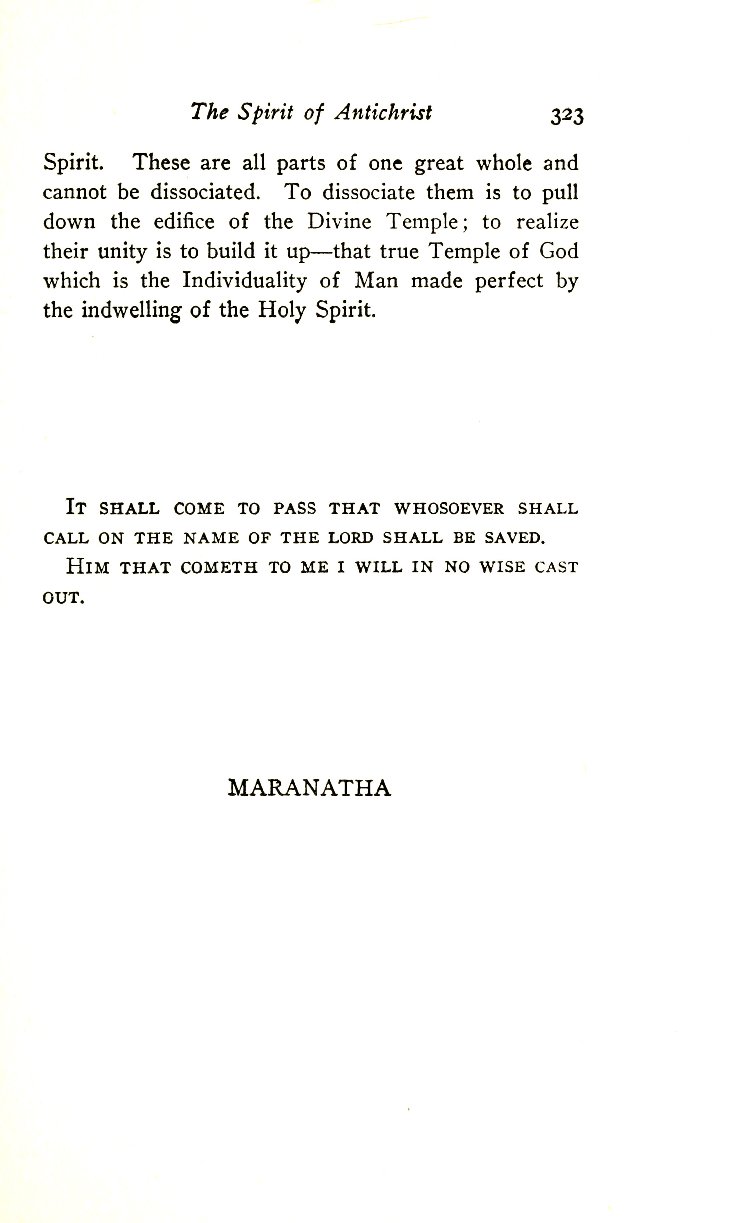 Spirit. These are all parts of one great whole and cannot be dissociated. To dissociate them is to pull down the edifice of the Divine Temple; to realise their unity is to build up --- that true Temple of God which is the Individuality of Man made perfect by the indwelling of the Holy Spirit.