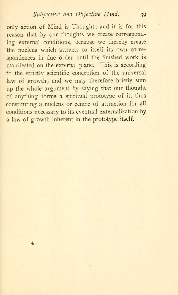Contents - Foreword - Spirit And Matter - The Higher Mode of Intelligence Controls The Lower - Unity of The Spirit - Subjective And Objective Mind - Further Consideration Regarding Subjective and Objective Mind - Law of Growth - Receptivity - Reciprocal Action of The Universal And Individual Minds - Causes And Conditions - Intuition - Healing - The Will - In Touch With Subconscious - Body - Soul - Spirit -