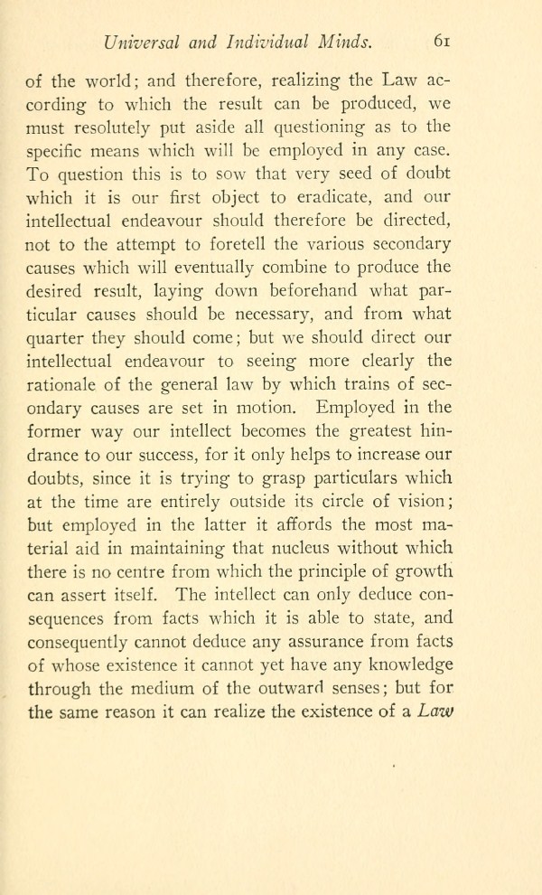 Contents - Foreword - Spirit And Matter - The Higher Mode of Intelligence Controls The Lower - Unity of The Spirit - Subjective And Objective Mind - Further Consideration Regarding Subjective and Objective Mind - Law of Growth - Receptivity - Reciprocal Action of The Universal And Individual Minds - Causes And Conditions - Intuition - Healing - The Will - In Touch With Subconscious - Body - Soul - Spirit -