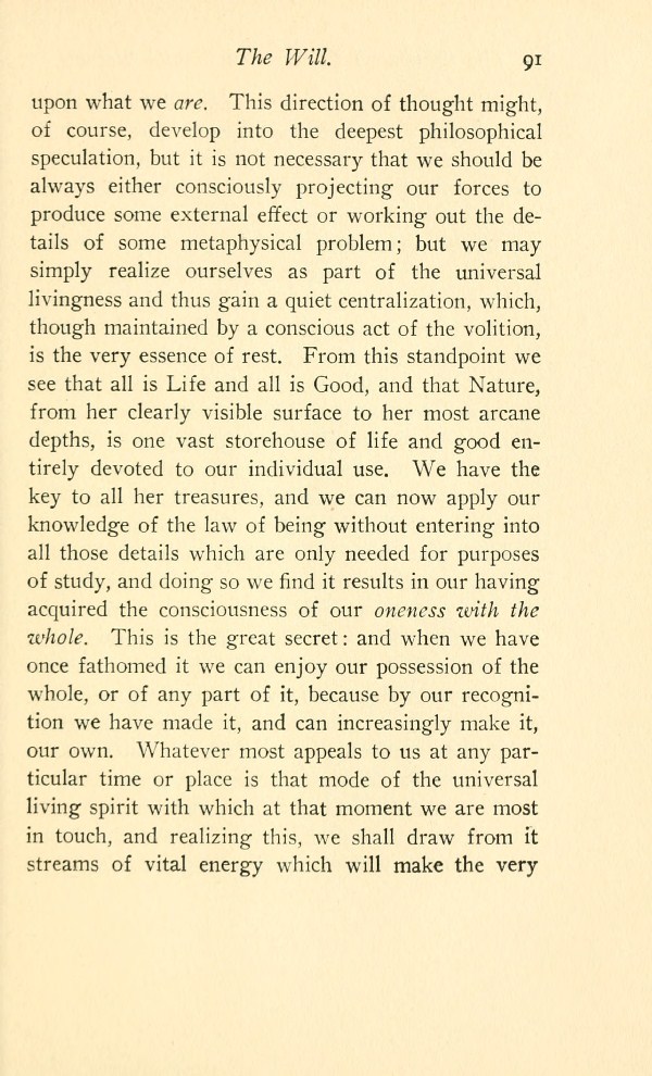 Contents - Foreword - Spirit And Matter - The Higher Mode of Intelligence Controls The Lower - Unity of The Spirit - Subjective And Objective Mind - Further Consideration Regarding Subjective and Objective Mind - Law of Growth - Receptivity - Reciprocal Action of The Universal And Individual Minds - Causes And Conditions - Intuition - Healing - The Will - In Touch With Subconscious - Body - Soul - Spirit -