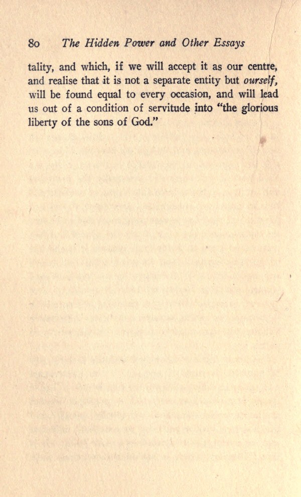 and which, if we will accept it as our centre, and realise that it is not a separate entity but ourself, will be found equal to every occasion, and will lead us out of a condition of servitude into "the glorious liberty of the sons of God."
