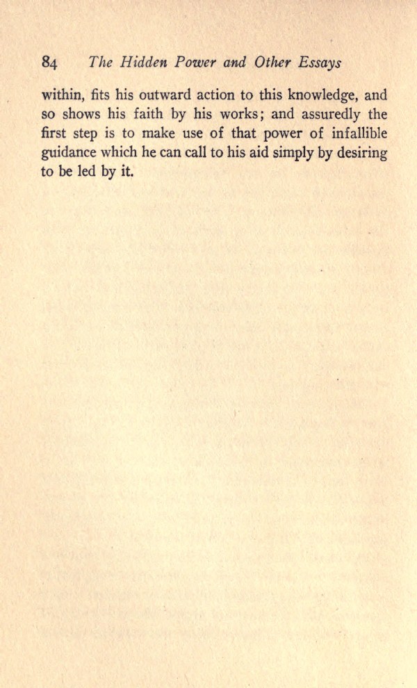 within, fits his outward action to this knowledge, and so shows his faith by his works; and assuredly the first step is to make use of that power of infallible guidance which he can call to his aid simply by desiring to be led by it.