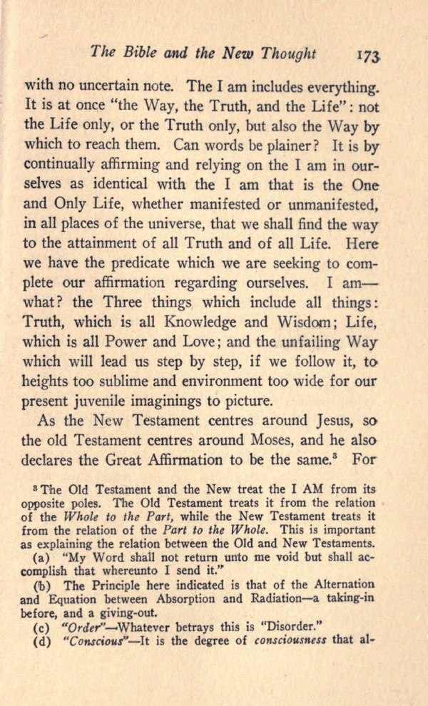 3 The Old Testament and the New treat the I AM from its opposite poles. The Old Testament treats it from the relation of the Whole to the Part, while the New Testament treats it from the relation of the Part to the Whole. This is important as explaining the relation between the Old and New Testaments.