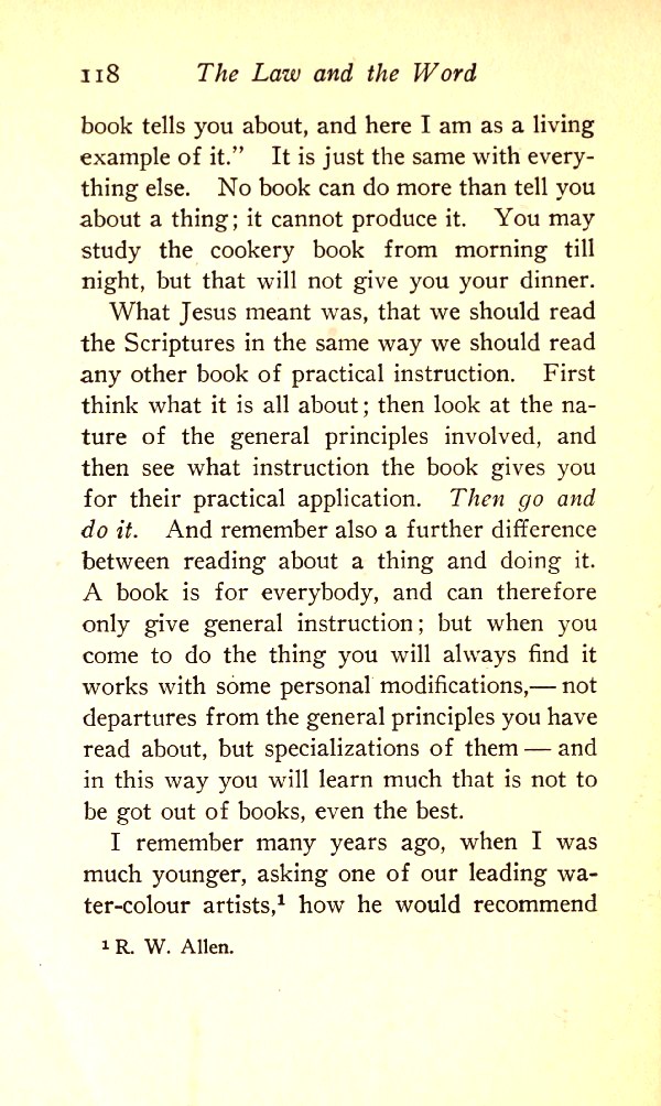 What Jesus meant was that we should read the Scriptures in the same way we should read any other book of practical instruction. First think what it is all about; then look at the nature of the general principles involved, and then see what instruction the book gives you for their practical application. Then go and do it.