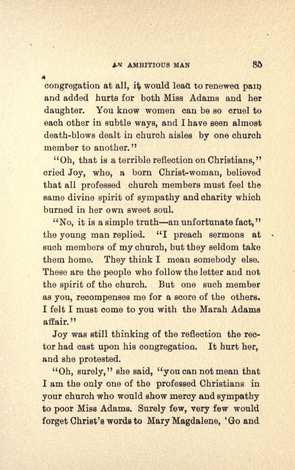 Joy was still thinking of the reflection the rector had cast upon his congregation. It hurt her, and she protested.