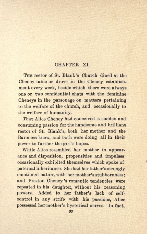 That Alice Cheney bad conceived a sudden and consuming passion for the handsome and brilliant rector of St, Blank's, both her mother and the Baroness knew, and both were doing all in their power to further the girl's hopes.