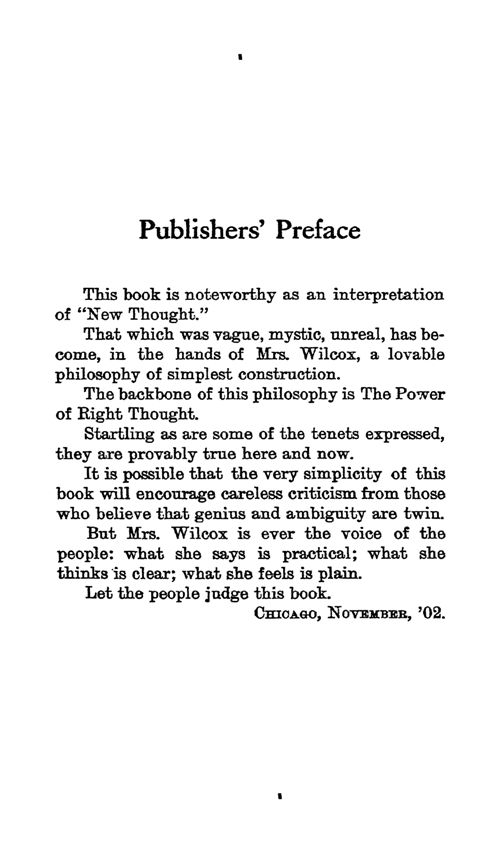 That which was vague, mystic, unreal, has become, in the hands of Mrs. Wilcox, a lovable philosophy of simplest construction.