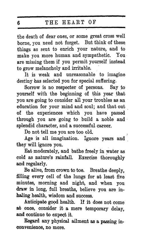 Be alive, from crown to toe. Breathe deeply, filling every cell of the lungs for at least five minutes, morning and night, and when you draw in long, full breaths, believe you are inhaling health, wisdom and success.