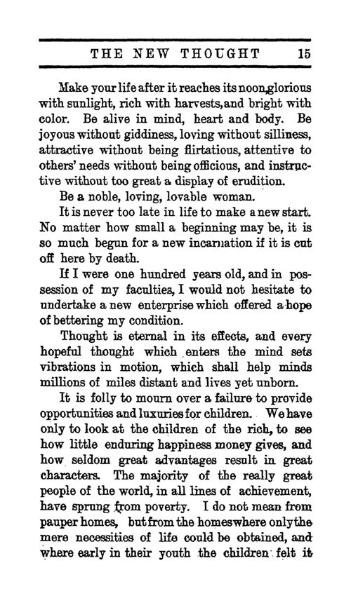 Thought is eternal in its effects, and every hopeful thought which enters the mind sets vibrations in motion, which shall help minds millions of miles distant and lives yet unborn.