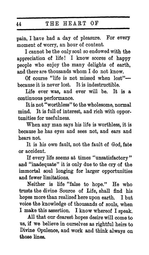 Neither is life "false to hope." He who trusts the divine Source of Life, shall find his hopes more than realized here upon earth. I but voice the knowledge of thousands of souls, when I make this assertion. I know whereof I speak.