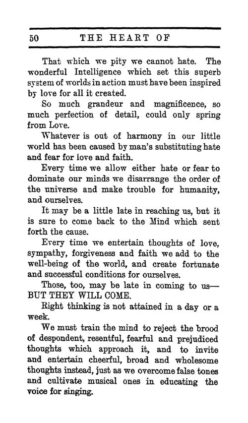 That which we pity we cannot hate. The wonderful Intelligence which set this superb system of worlds in action must have been inspired by love for all it created.
