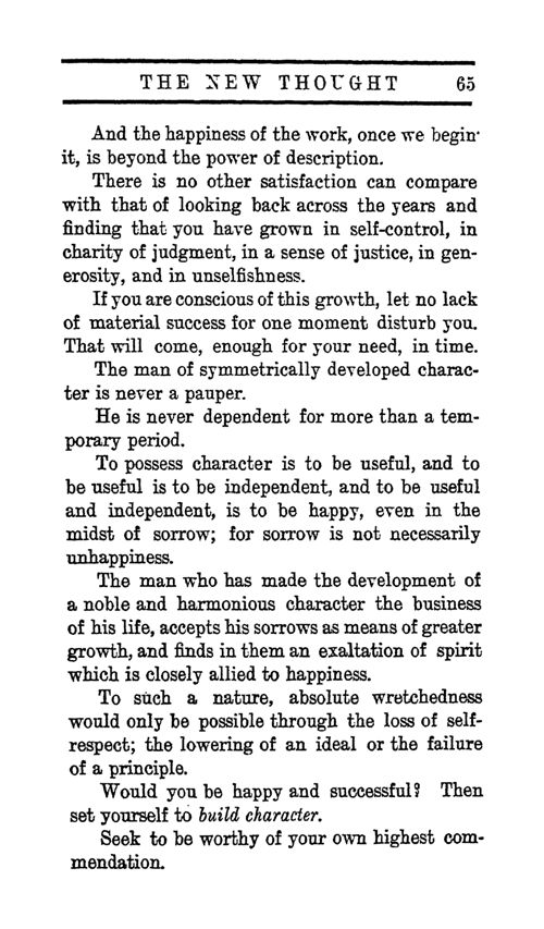 The man who has made the development of a noble and harmonious character the business of his life, accepts his sorrows as means of greater growth, and finds in them an exaltation of spirit which is closely allied to happiness.