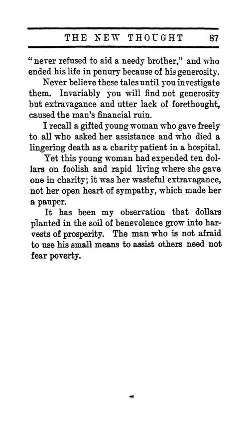 It has been my observation that dollars planted in the soil of benevolence grow into harvests of prosperity. The man who is not afraid to use his small means to assist others need not fear poverty.