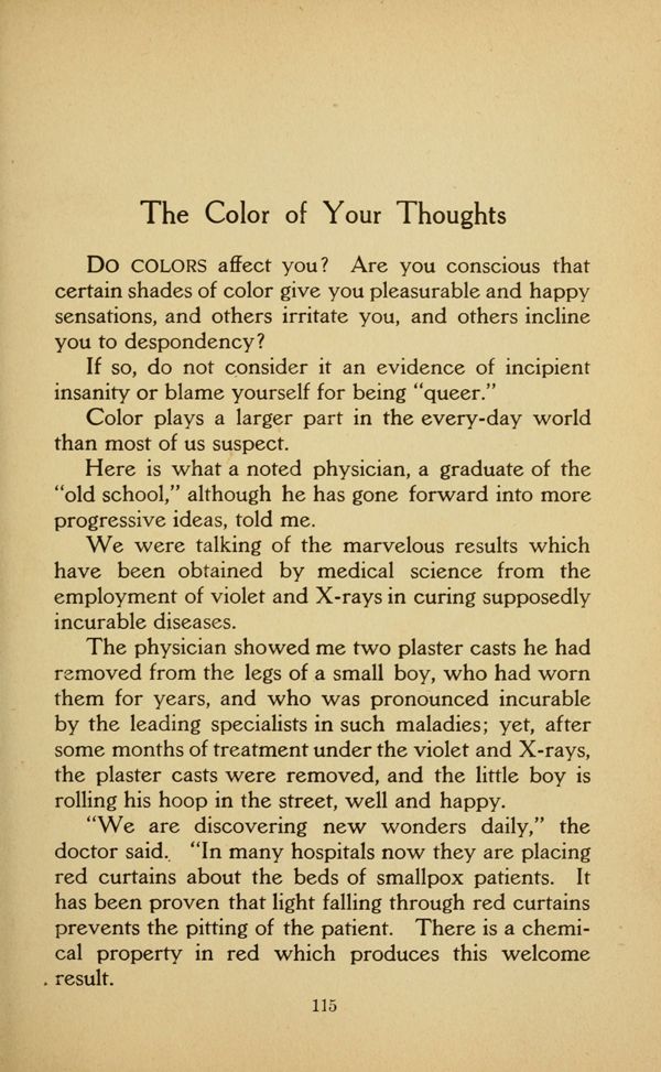 If so, do not consider it an evidence of incipient insanity or blame yourself for being "queer." Color plays a larger part in the every-day world than most of us suspect.