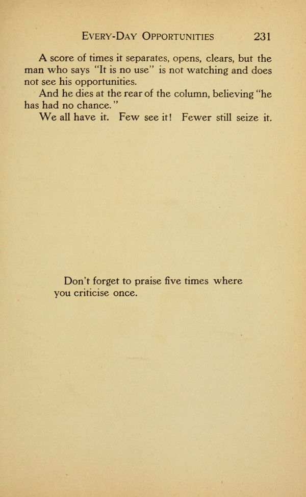 A score of times it separates, opens, clears, but the man who says "It is no use" is not watching and does not see his opportunities.