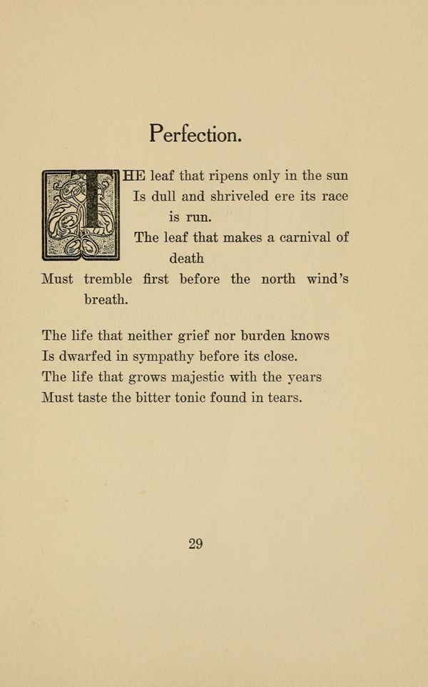 A Dialogue ~ The Weed ~ Strength ~ Affirm ~ The Chosen ~ The Nameless ~ The Word ~ Assistance ~ Credulity ~ Consciousness ~ The Structure ~ Our Souls ~ The Law ~ Knowledge ~ Give ~ Perfection ~ Fear ~ The Way ~ Understood ~ His Mansion ~ Effect ~ Three Things ~ Obstacles ~ Prayer ~ Climbing ~ "There Is No Death, There Are No Dead" ~ Realization ~ Contents -