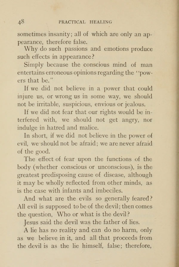 The effect of fear upon the functions of the body (whether conscious or unconscious), is the greatest predisposing cause of disease, although it may be wholly reflected from other minds, as in the case with infants and imbeciles.