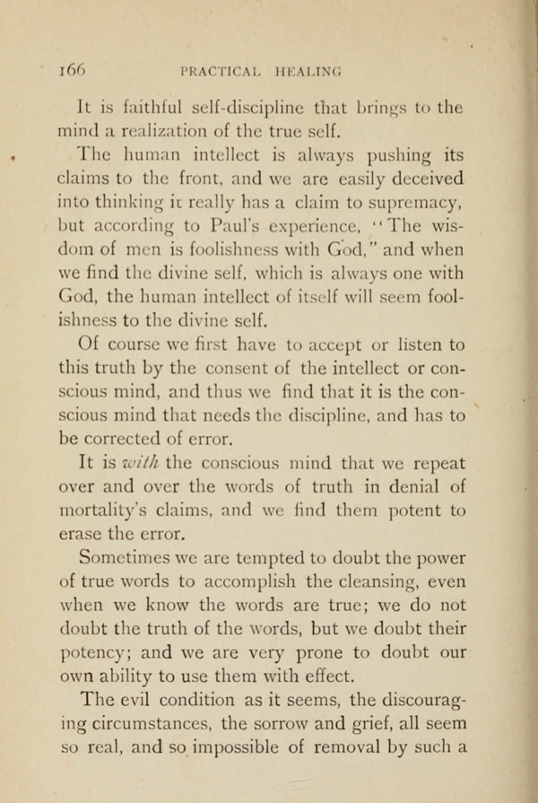 Of course we first have to accept or listen to this truth by the consent of the intellect or conscious mind, and thus we find that it is the conscious mind that needs the discipline, and has to be corrected of error.
