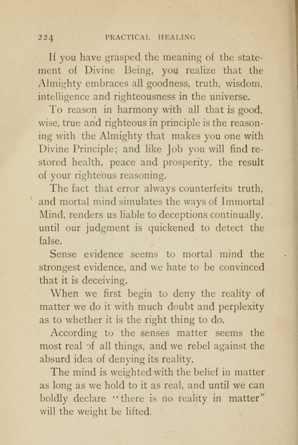 The mind is weighted with the belief in matter as long as we hold to it as real, and until we can boldly declare "there is no reality in matter" will the weight be lifted.