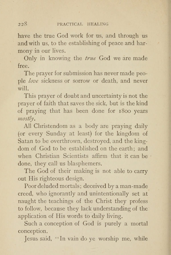 All Christendom as a body are praying daily (or every Sunday at least) for the kingdom of Satan to be overthrown, destroyed, and the kingdom of God to be established on the earth; and when Scientists begin to prove that it can be done, they call us blasphemers.