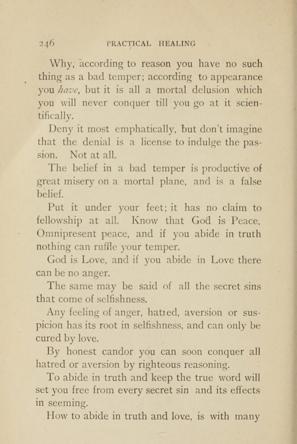 The belief in a bad temper is productive of great misery on a mortal plane, and is a false belief.
