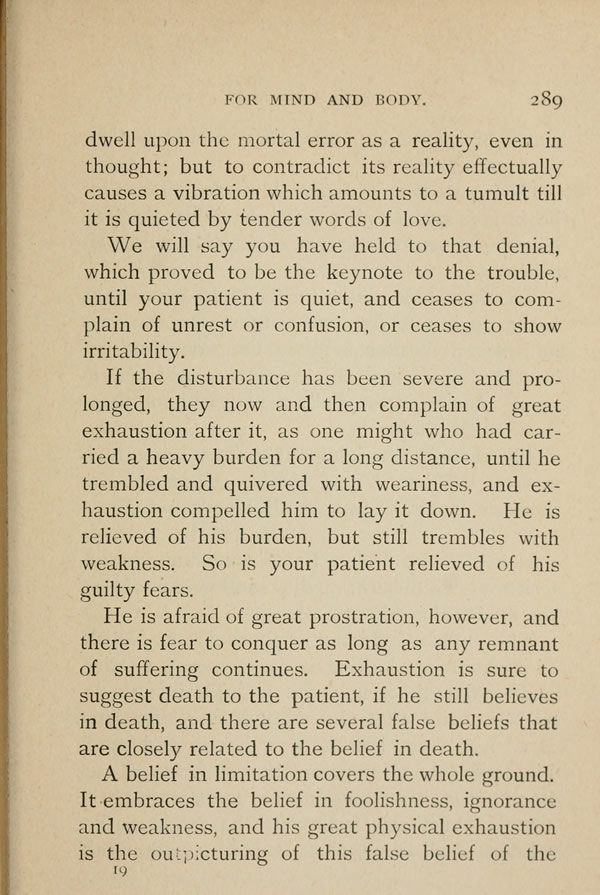 If the disturbance has been severe and prolonged, they now and then complain of great exhaustion after it, as one might who had carried a heavy burden for a long distance, until he trembled and quivered with weariness, and exhaustion compelled him to lay it down. He is relieved of his burden, but still trembles with weakness. So is your patient relieved of his guilty fears.