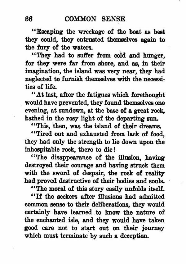 "If the seekers after illusions had admitted common sense to their deliberations, they would certainly have learned to know the nature of the enchanted isle, and they would have taken good care not to start out on their journey which must terminate by such a deception.