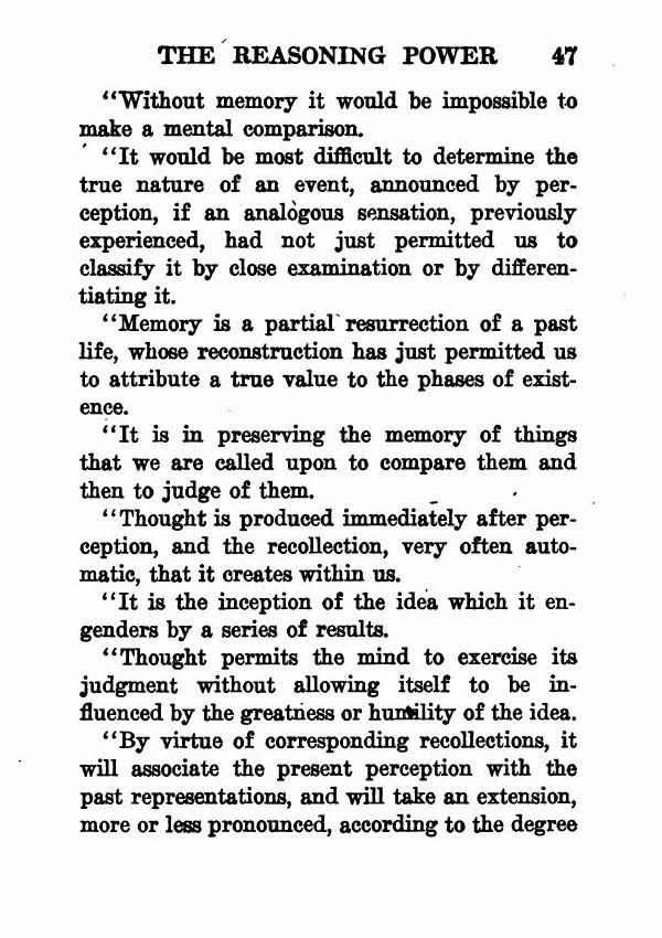 "Thought is produced immediately after perception, and the recollection, very often automatic, that it creates within us.