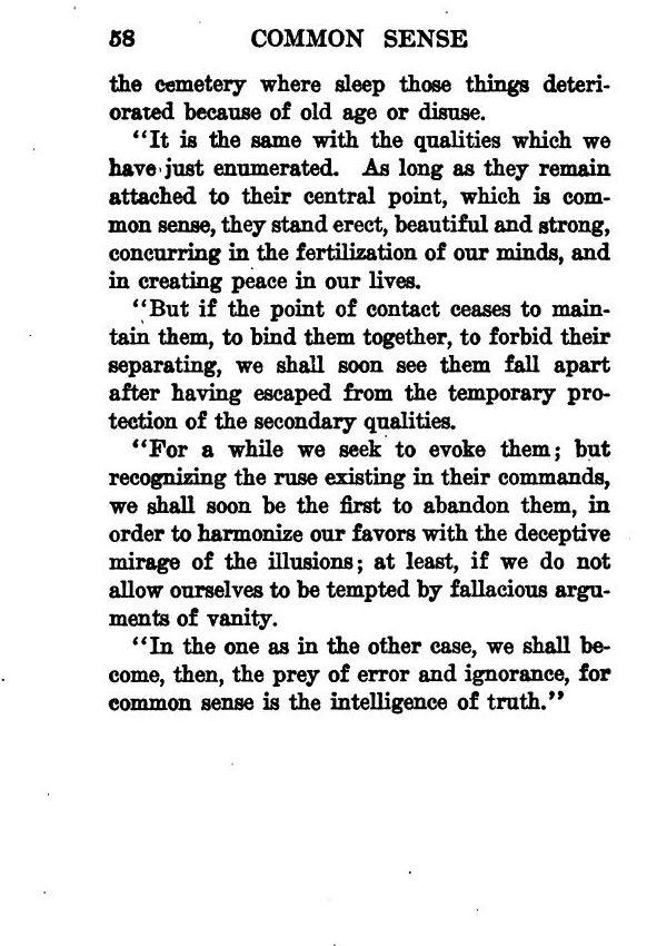 "In the one as in the other case, we shall become, then, the prey of error and ignorance, for common sense is the intelligence of truth."