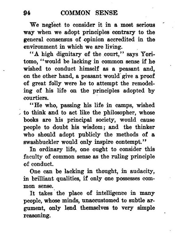 One can be lacking in thought, in audacity, in brilliant qualities, if only one possesses common sense.
