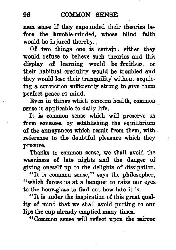 It is common sense which will preserve us from excesses, by establishing the equilibrium of the annoyances which result from them, with reference to the doubtful pleasure which they procure.