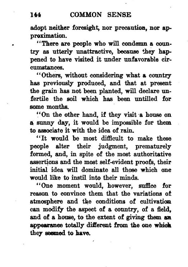 "It would be most difficult to make these people alter their judgment, prematurely formed, and, in spite of the most authoritative assertions and the most self-evident proofs, their initial idea will dominate all those which one would like to instil into their minds.