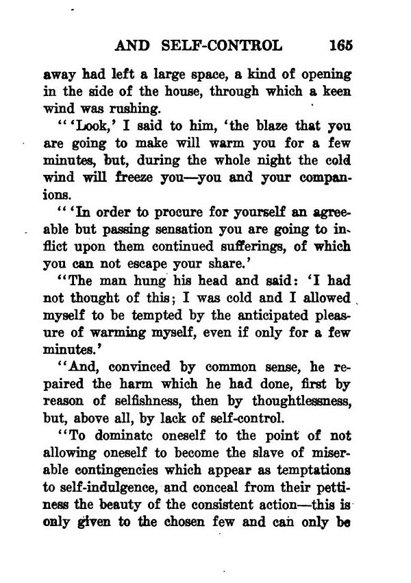 "And, convinced by common sense, he repaired the harm which he had done, first by reason of selfishness, then by thoughtlessness, but, above all, by lack of self-control.
