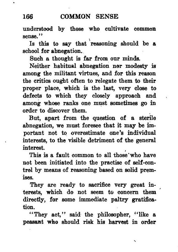 But, apart from the question of a sterile abnegation, we must foresee that it may be important not to overestimate one's individual interests, to the visible detriment of the general interest.
